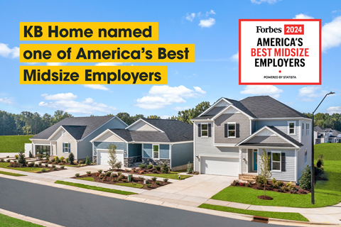 “We’re honored to be named as one of America’s Best Midsize Employers by Forbes for a third time. We believe KB Home earned a place in the top 20% among all companies listed through our focus on cultivating a supportive and inclusive workplace culture that encourages the growth and development of our team members,” said Jeffrey Mezger, KB Home’s Chairman and Chief Executive Officer. “This distinction is a testament to our employees, who have played an essential role in our business for over 65 years. Their passion for our customers and dedication to building the American dream is evident as they continue to be the heart and soul of KB Home.”